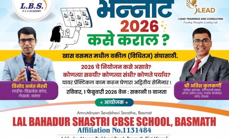 लालबहादूर शास्त्री विद्यालय, वसमत येथे रविवार दि. 1 फेब्रुवारी 2026 रोजी “भन्नाट 2026 कसे घडवायचे?” या विषयावर आधारित एक भव्य, प्रेरणादायी व प्रॅक्टिकल सेमिनार अत्यंत उत्साहात संपन्न झाला.